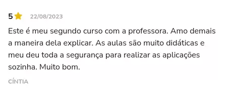 O curso é composto em duas partes, sendo a primeira parte teórica, onde você é levado em um ambiente de sala de aula, somente você e a professora em uma aula VIP, mas com a vantagem que você poderá assistir as aulas de onde quiser. Retome, repita e volte quantas vezes achar necessário dentro do seu acesso. Isso tudo na palma da sua mão.